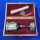 Набор икорница с ложками и три рюмки на подставке