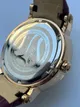 Корпус часов выполнен из благородного, полированного хрома, а циферблат и безель украшены сверкающими кристаллами Swarovski, добавляя этим часам неповторимый блеск. Японский кварцевый механизм обеспечивает безупречную точность хода, а сапфировое стекло защищает циферблат от повреждений.